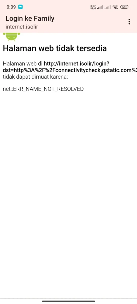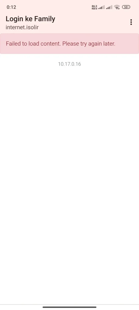 Jika sudah berhasil, maka akan muncul page isolir dan pelanggan yang terhubung ke jaringan tersebut tidak dapat menggunakan internet. Selain itu, page isolir tersebut dapat diedit sesuai kebutuhan melalui panel code editor pada detail layanan isolir.