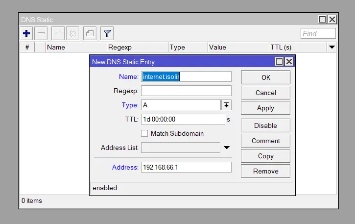 /ip dns static add name=internet.isolir address=192.168.66.1