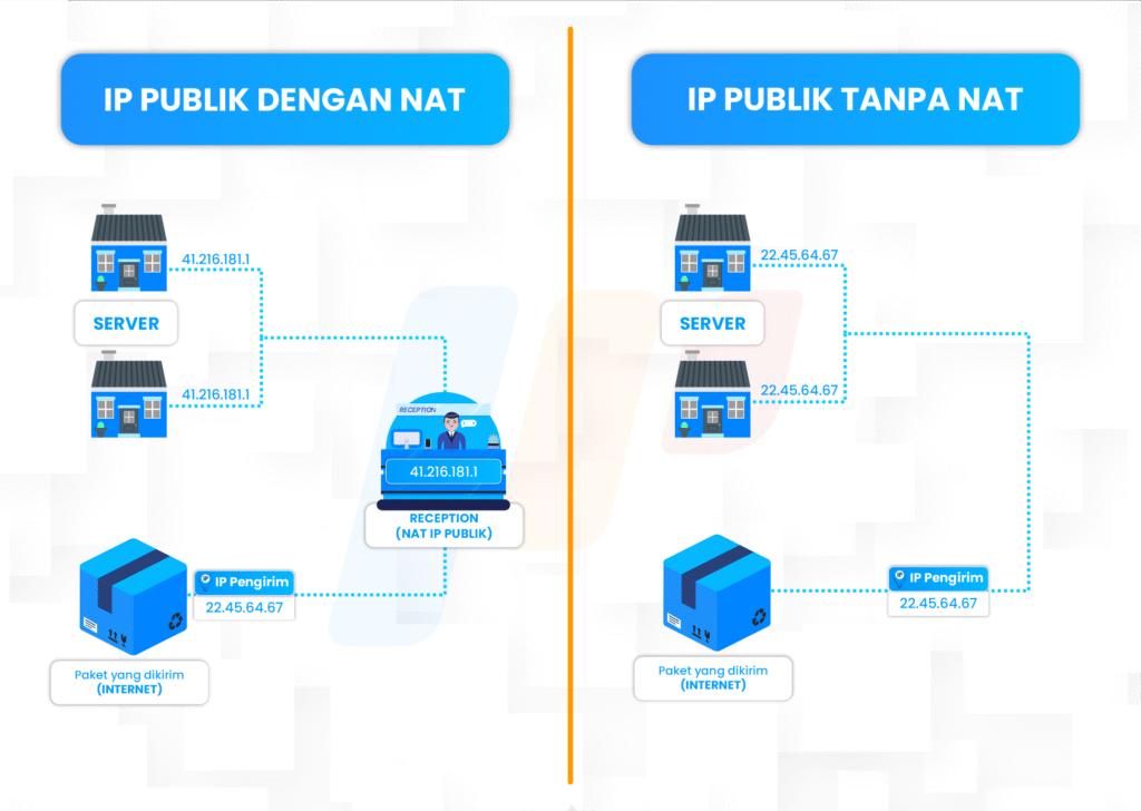 Namun, ada kalanya pelanggan membutuhkan IP Publik yang “murni” tanpa NAT. Misalnya untuk kebutuhan VPN server, monitoring, firewall, atau aplikasi tertentu yang harus mengetahui alamat IP asli pengakses dari luar jaringan. Dalam kondisi ini, NAT perlu dilepaskan agar IP Publik dapat berfungsi penuh sesuai kebutuhan.